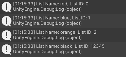 Debug.Log($"List Name: {item.ListName}, List ID: {item.ListID}");