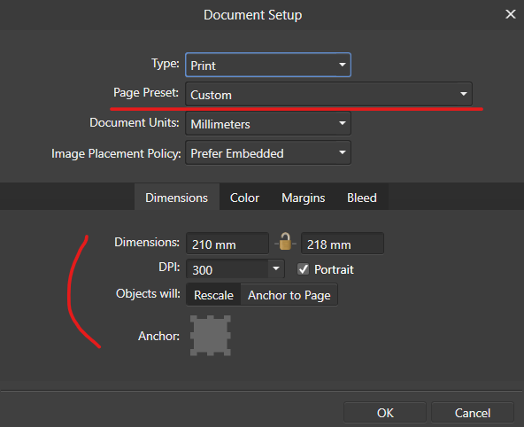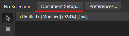 Document Setup... > Page Preset 혹은 Dimensions tab에서 직접 수정