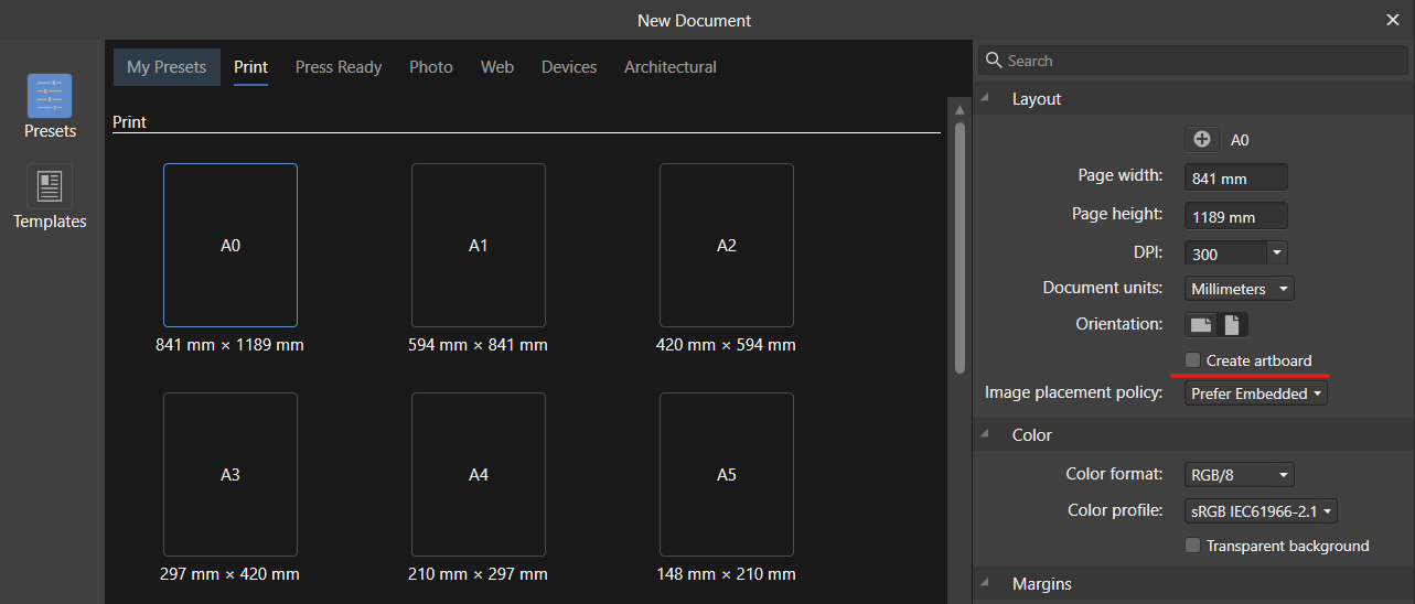 + 아트보드를 사용하기 위해서는 새 문서를 만들 때 Create artboard를 체크해 주는 것이 중요하다.