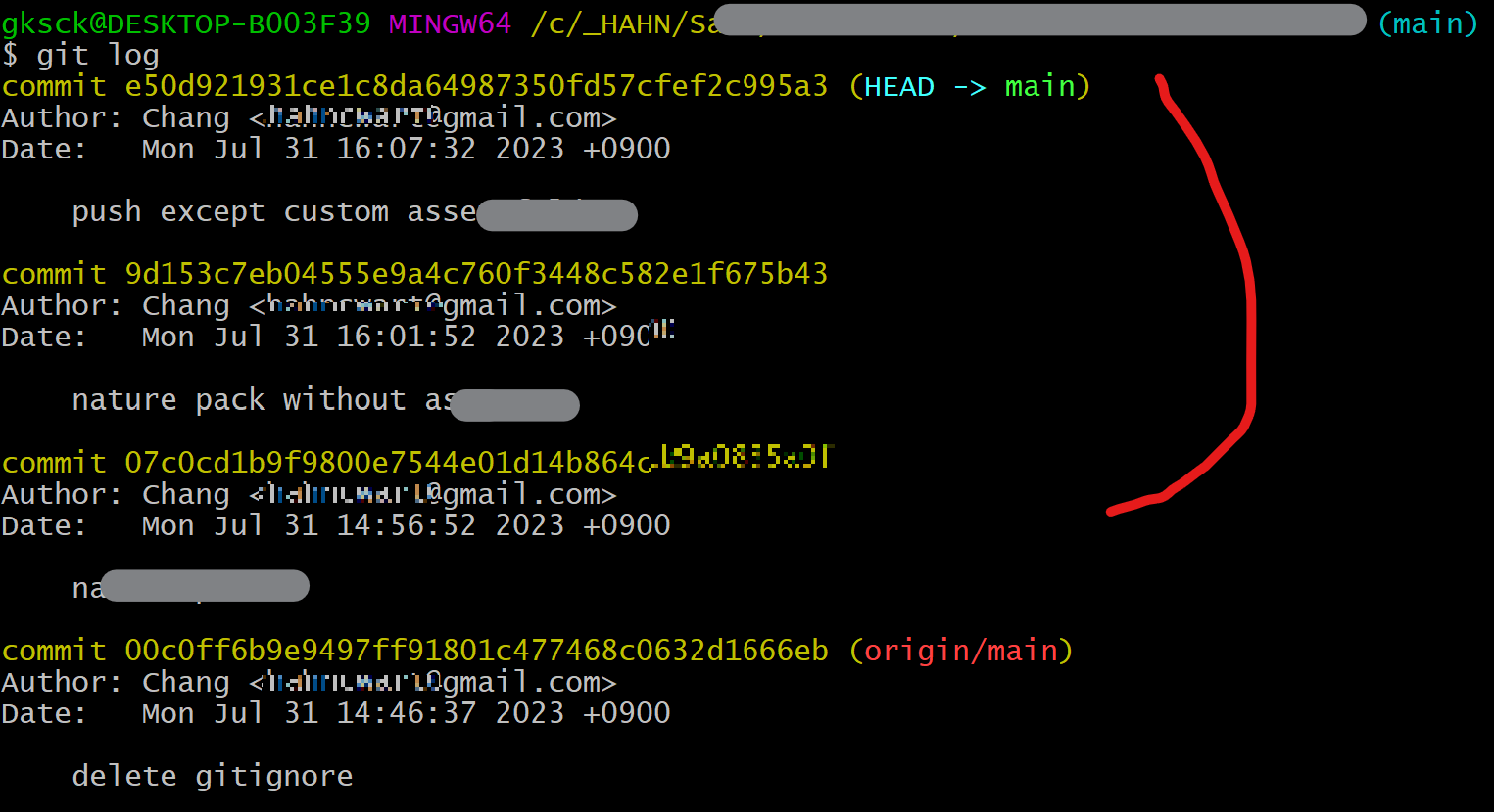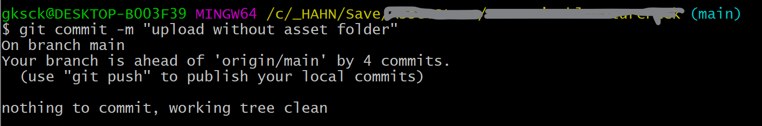 커맨드를 통해 commit 이 몇개 남아있는 지 알 수 있다. (아래 사진의 경우 3개가 남아있는 것을 볼 수 있다.)